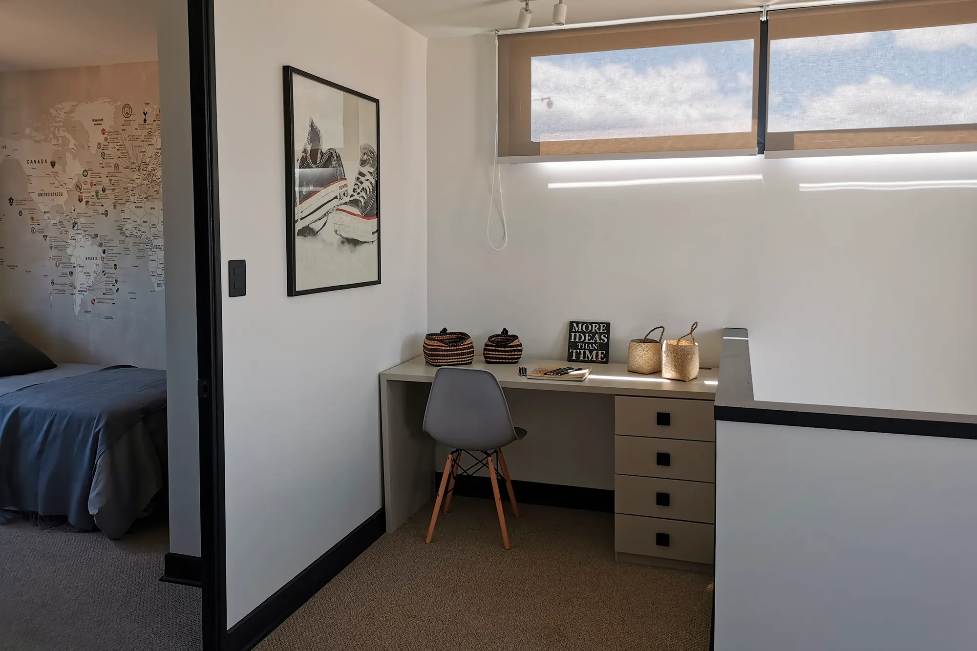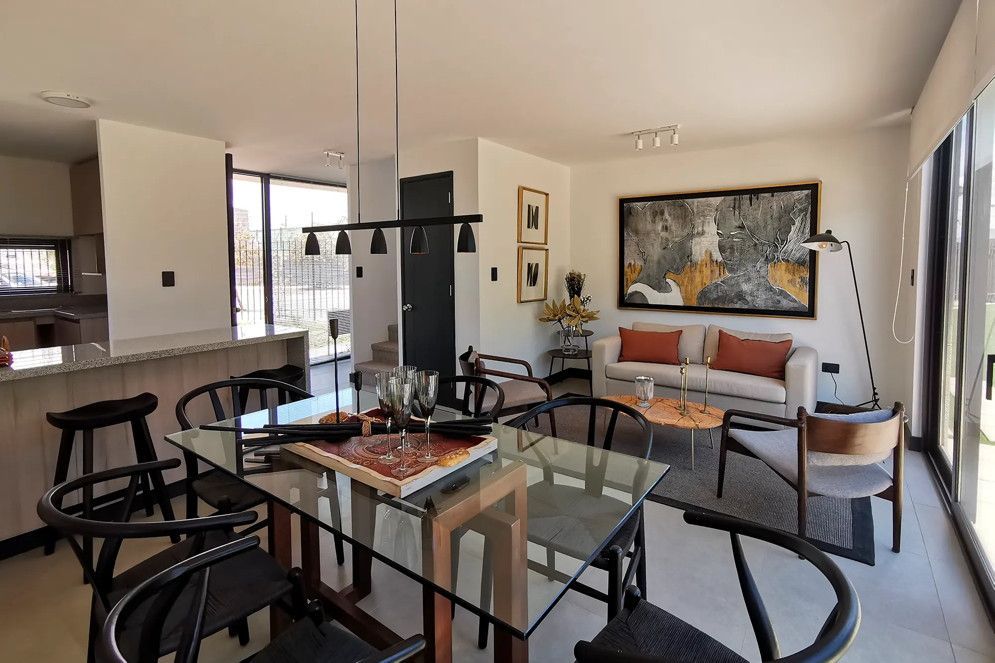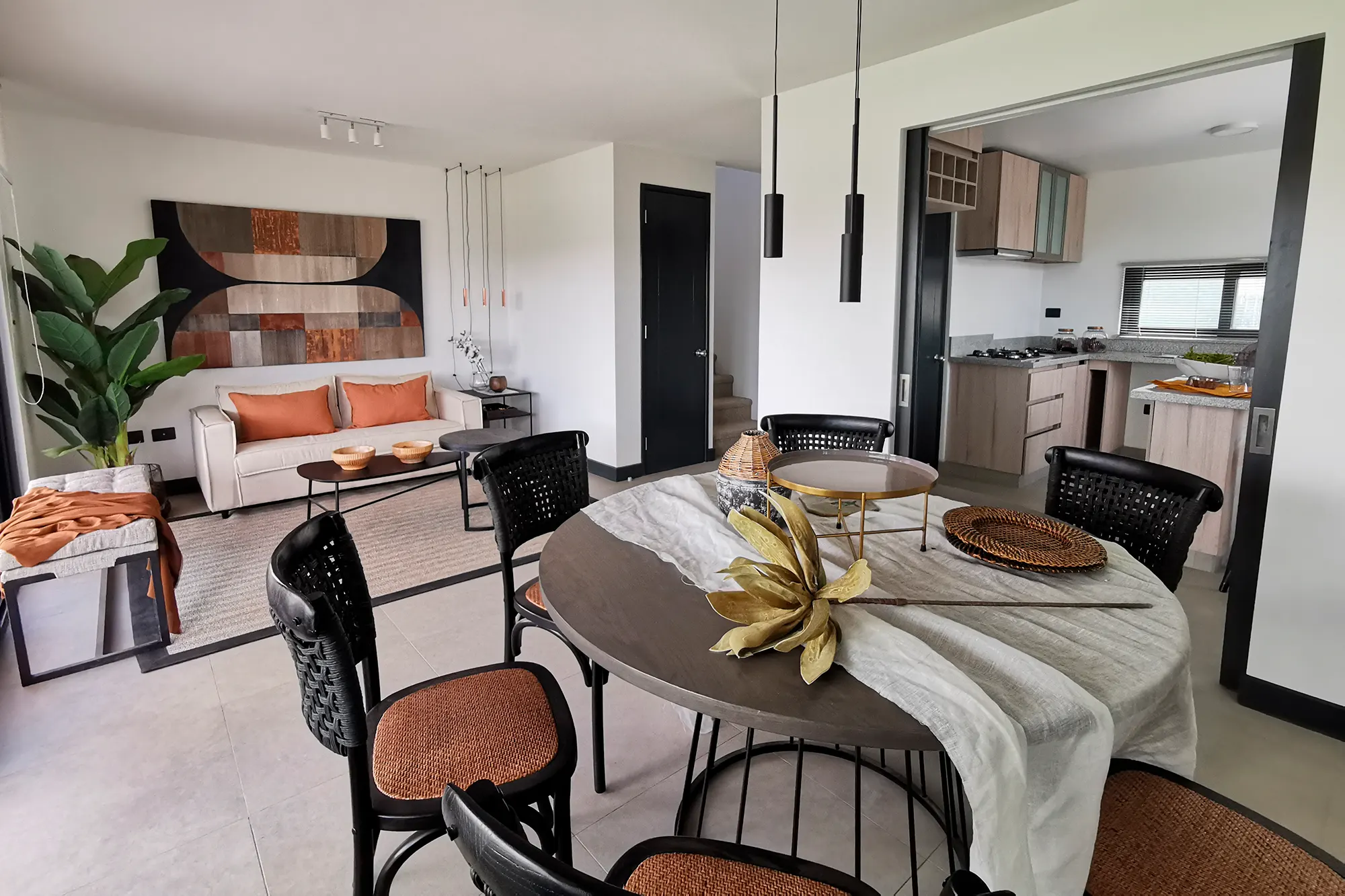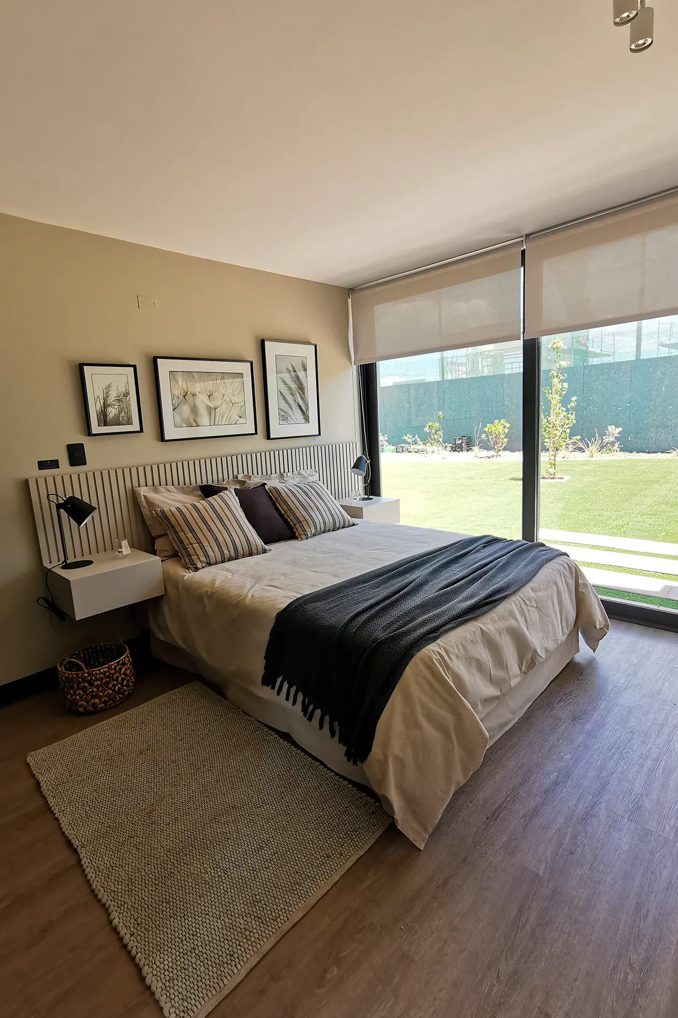 5 modelos de casas, mediterráneas y tradicionales, de 100,02 a 117,14 m2 con 3 dormitorios, 3 baños, sala de estar y logia techada. Ventanas de PVC termopanel. Cocinas en opción tradicional o integrada, amobladas con cubierta de granito y equipadas con cocina encimera, horno empotrado y campana. Opción de calefactores eléctricos en living comedor, dormitorio principal y sala de estar.