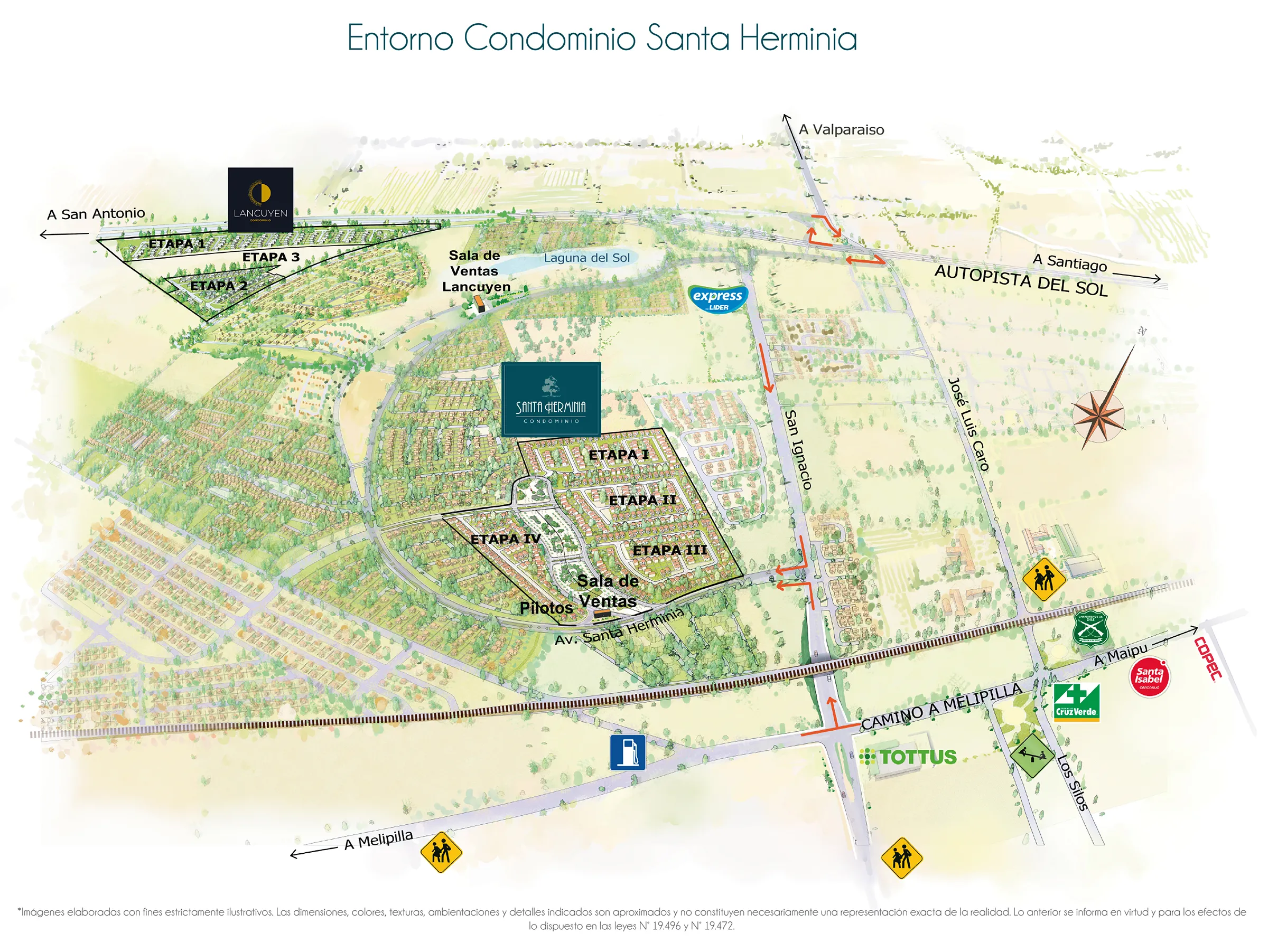 A poca distancia de la Autopista del Sol y del Camino a Melipilla, desde tu casa en Santa Herminia estarás siempre conectado en minutos con el trabajo, los estudios, la familia.