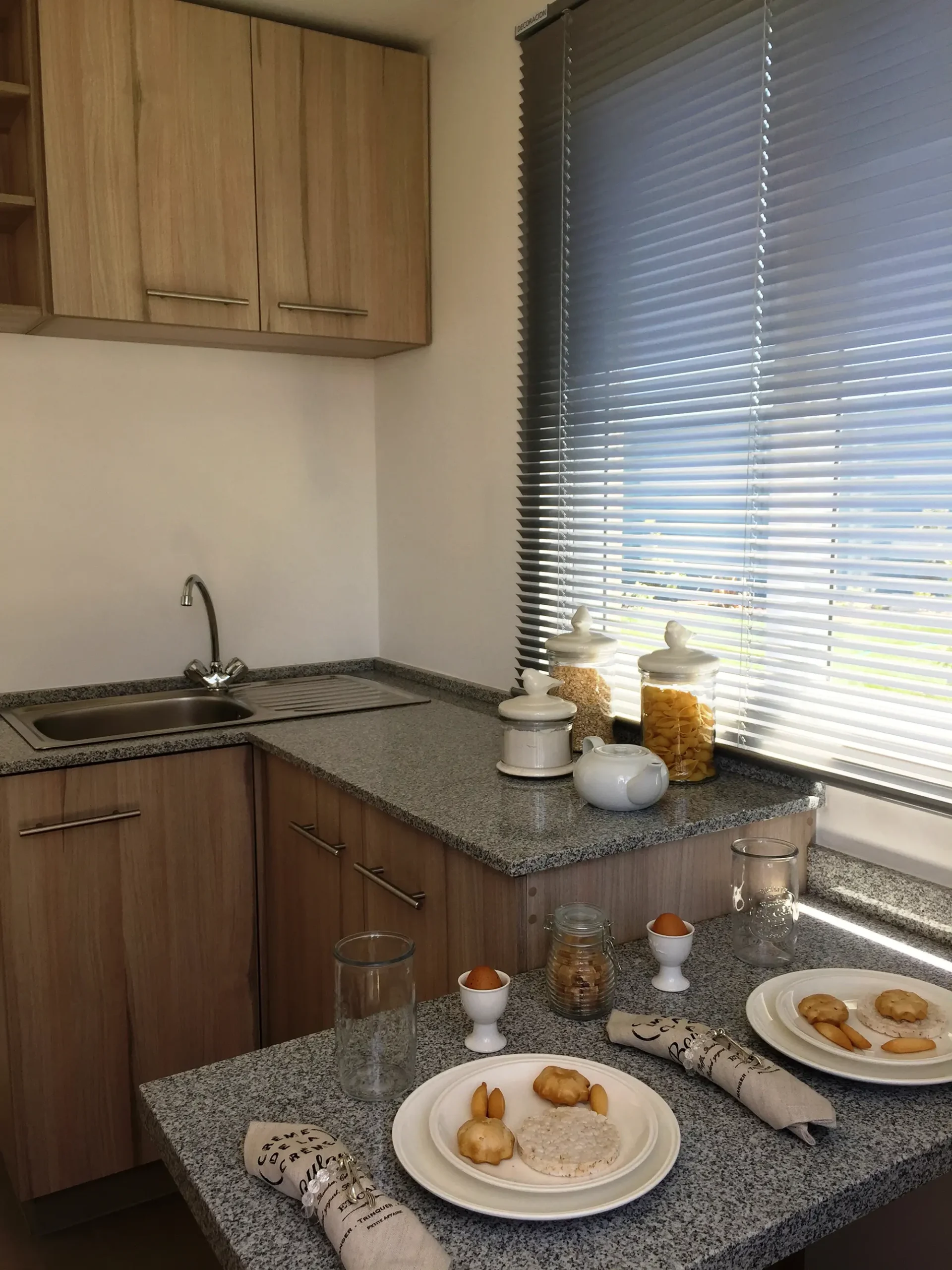 • Ventanas de PVC Termopanel en dormitorio principal, baños y ventana proyectante de cocina.